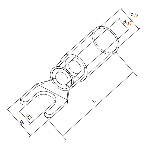 A.W.G | mm2 | Size | d1 | d2 | D | W | L | |||